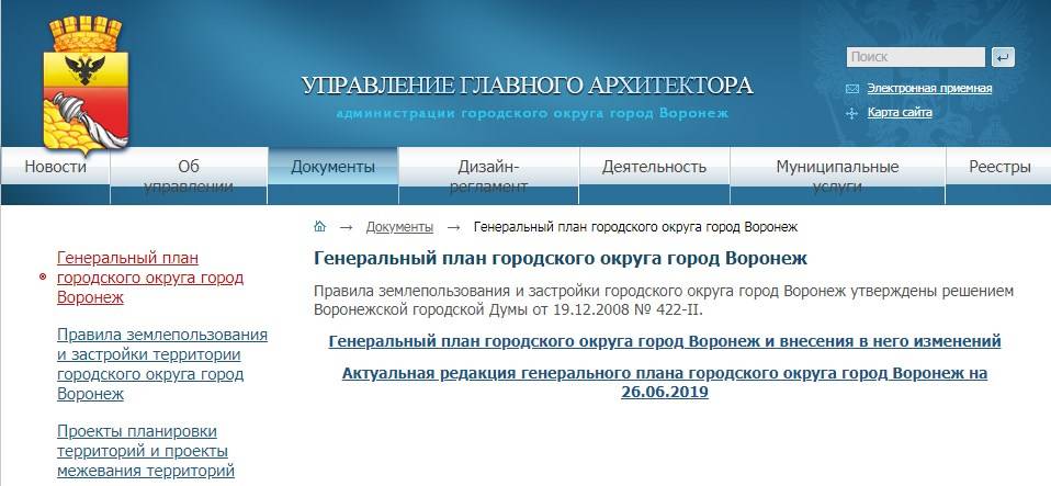 Сайт администрации г. Воронеж В отдельной вкладке вы можете ознакомиться с подробной картой городской застройки.