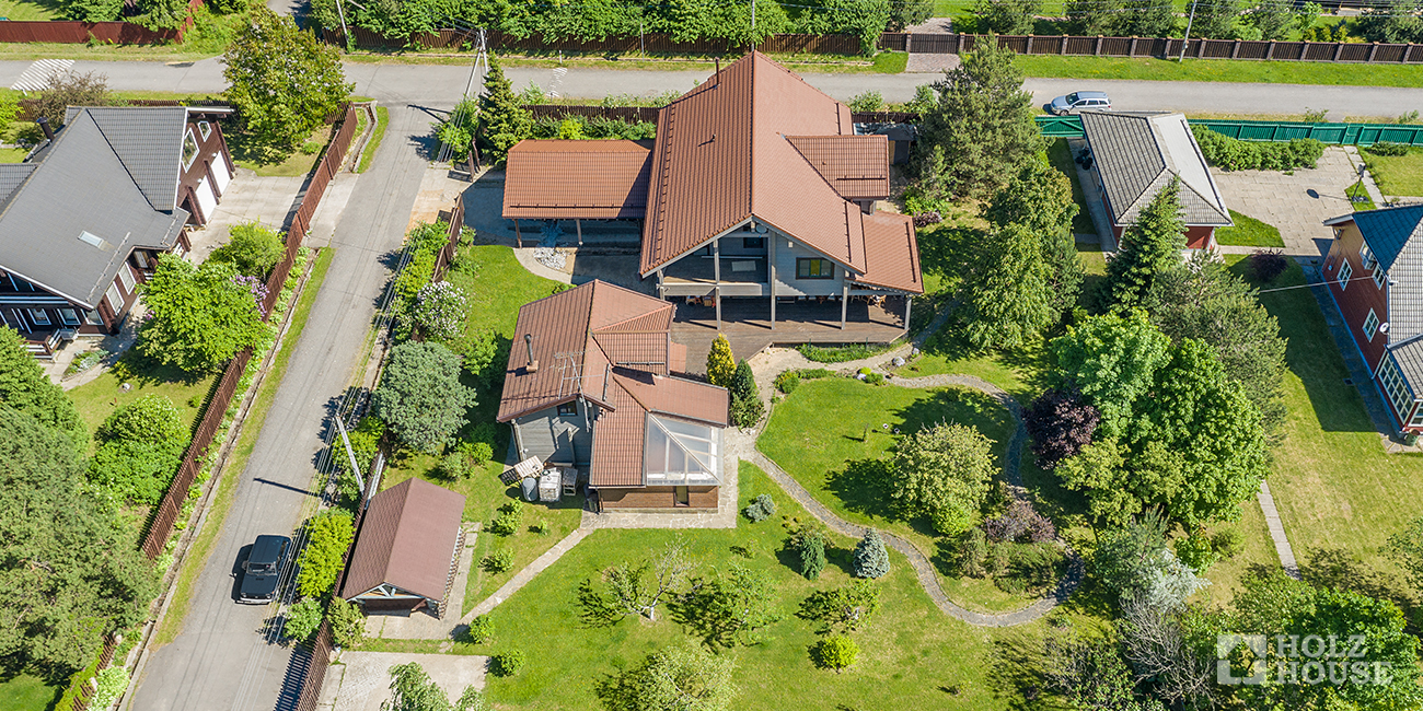 Плюс данного решения в том, что соседи окружают участок с трех сторон — это повышает безопасность, так как воры вряд ли остановят свой выбор на объекте с большим количеством потенциальных свидетелей.