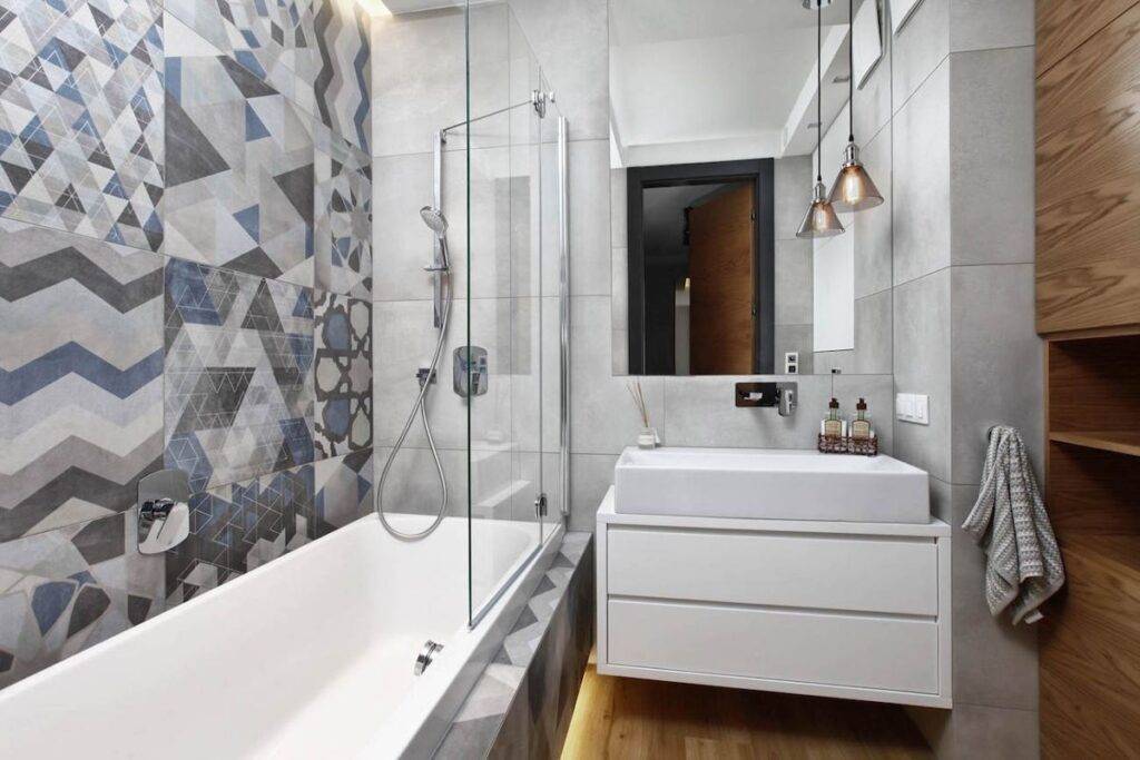 Если вы желаете использовать плитку геометрических форм и узоров — то пространство стены или пола превращаются в гигантский холст. Ваша задача подобрать верное сочетание цвета и паттерна самой плитки, что бы задумка естественно вписалась в интерьер.