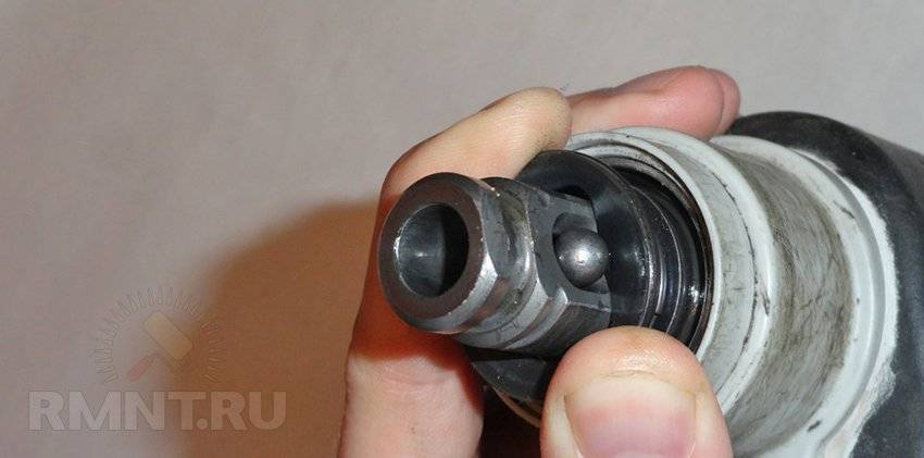 Если бур не держится в патроне, то стоит обратить внимание на маленький металлический шарик. Следует заменить его или фиксирующую пружину. При застревании бура проблема заключается в недостаточном количестве смазки