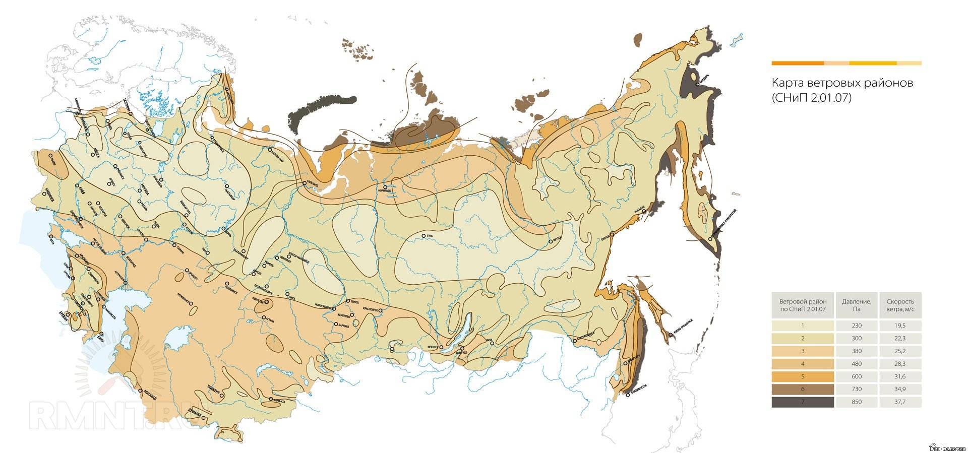 Чтобы определить ветровой район, необходимо найти на карте то место, где расположен ваш дом