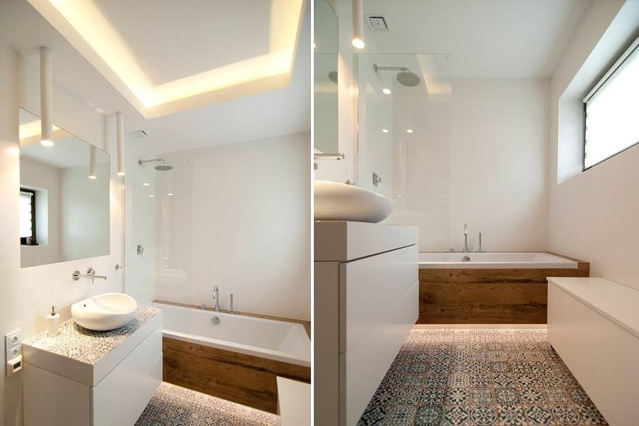 В дополнение к вышеупомянутой классике, фактически, каждая идея для потолка ванной комнаты хороша, пока данный материал имеет эстетическую ценность и хорошо переносит контакт с высокой температурой и влажностью. Популярные решения на рынке интерьера включают потолочные панели и световые коробы для ванных комнат. Металлическая потолочная плитка, например, из таких материалов, как олово, алюминий или медь, будет еще одним интригующим и функциональным решением.