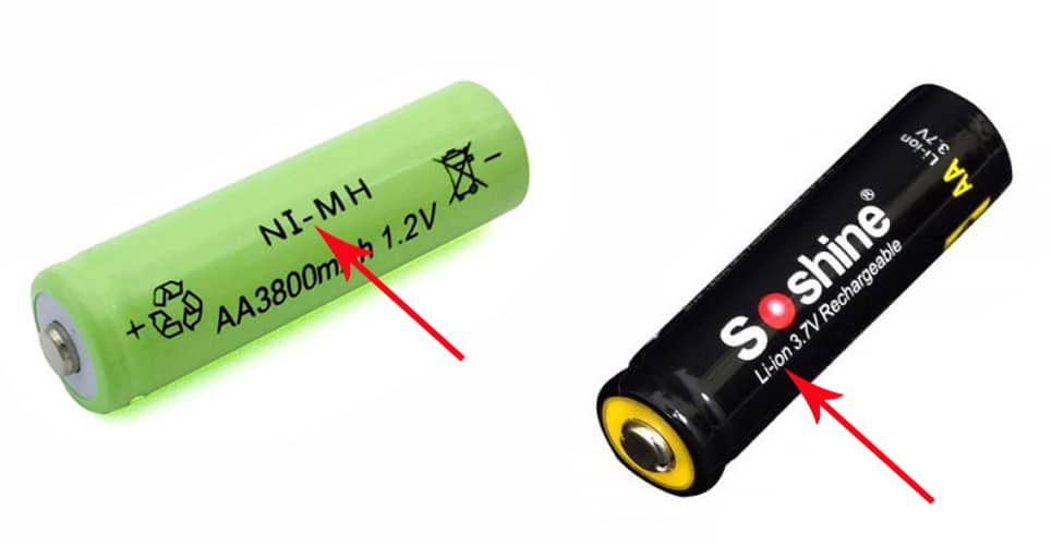 Кроме того, на аккумуляторах всегда указывается его тип – состав электролита и материал электродов. На фото ниже слева мы видим никель-металлогидридный аккумулятор, справа – литий-ионный.