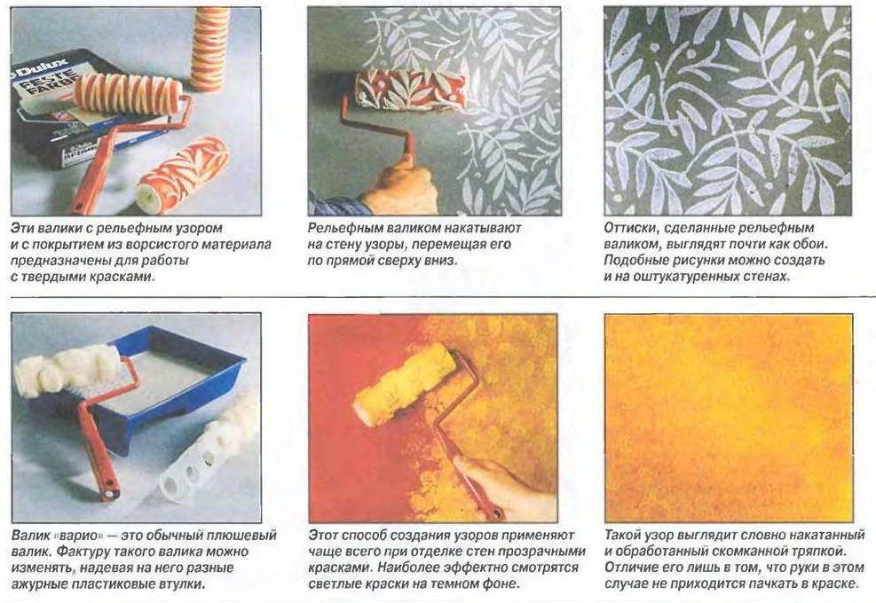 Валик с рельефом | Оставляет на покрытии выраженный рисунок, узор. | Применяется только для узорчатой покраски. |