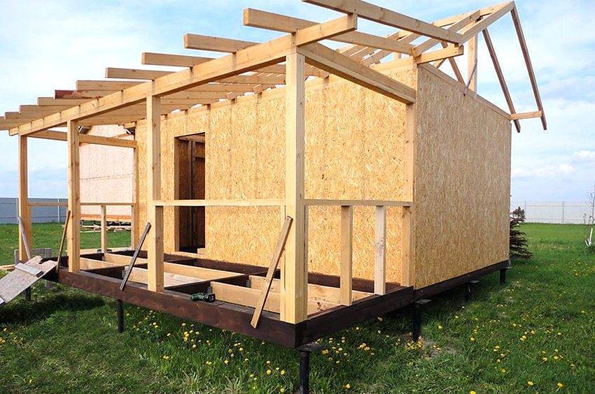 Процесс сборки небольшой каркасно-щитовой бани с фундаментом на сваях