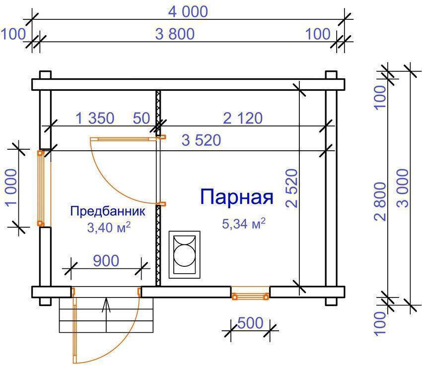 Проект маленькой каркасно-щитовой бани 4 на 3 м