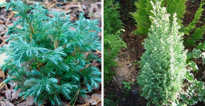 - хвойники с другой структурой иголок и строением хвои (ели, колоновидные туи, можжевельники);
