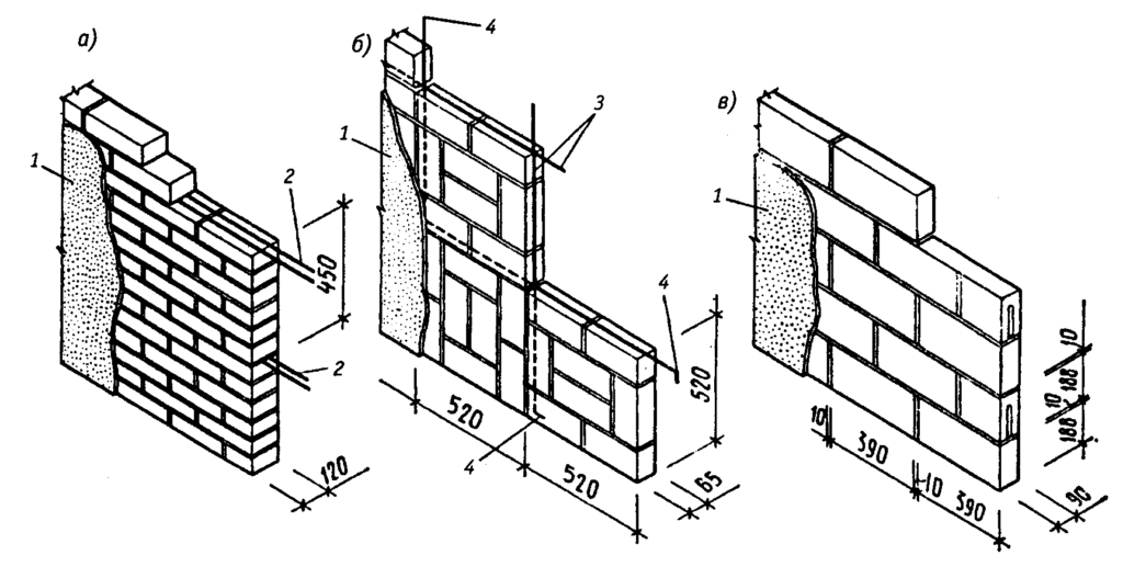 Квалифицированно выполненная перевязка гарантирует надежность кладки и предотвращает образование трещин. Возможные варианты перевязки: