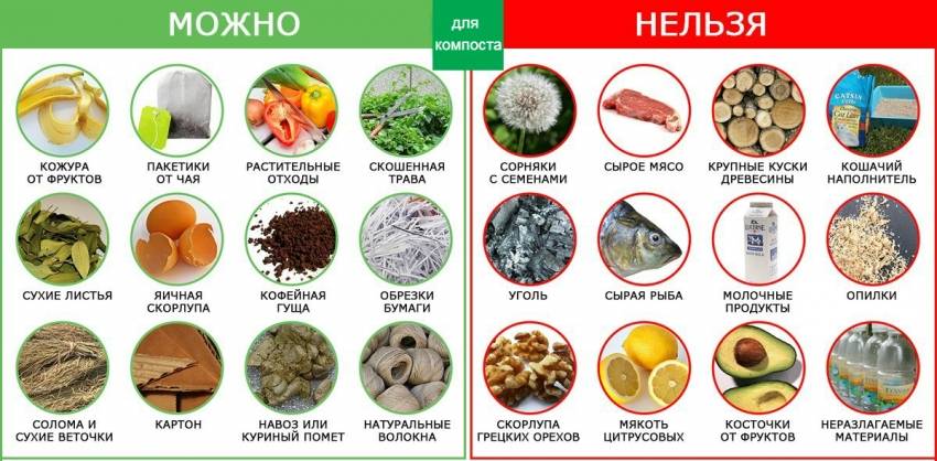 Список продуктов, которые подходят или вредят процессам создания качественного компоста