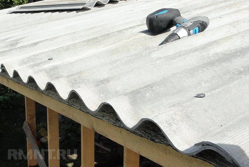 Шифер. Листы укладываются с нахлестом не менее 10 см. Если нахлест будет слишком малым, под верхние листы будет проникать влага.