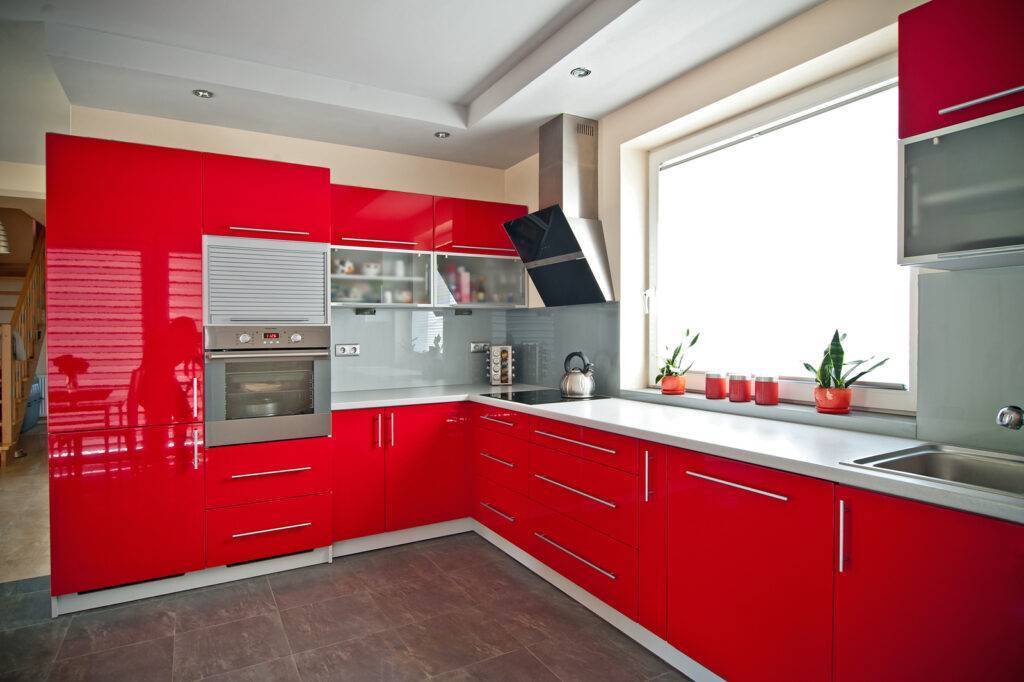 Помните, что кухня, выполненная в красном цвете, смотрится красиво, но в то же время данный цвет очень выдает загрязнения.