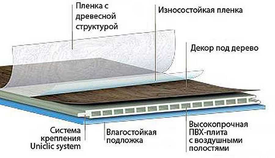 Этот вид ламинированного покрытия для пола появился не так давно. Отличится он тем, что его основа — не МДФ (HDF) плита, а пластиковая доска с полостями. На нее нанесены декоративный и защитный слой. Позиционируется она как 43 класс, может сутками находиться в воде и не менять ни свойств, ни внешнего вида.