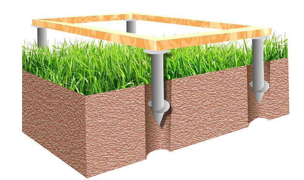 МЗЛФ на сваях рекомендуется строить в тех случаях, когда нет уверенности в однородности и прочности несущего грунта. Такая конструкция лишена недостатков мелкозаглубленного ленточного фундамента.