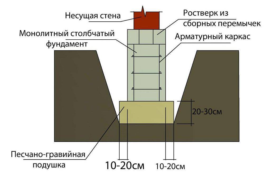 Такой вариант более устойчив, имеет высокую жесткость, надежен при неплотных подстилающих грунтах.