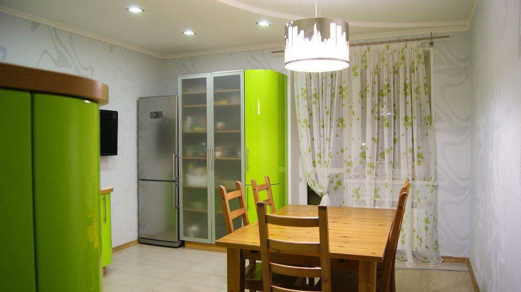 Также для небольшой кухни лучше выбрать люстру в светлых, пастельных тонах. В большом помещении не потеряется яркий, рожковый светильник