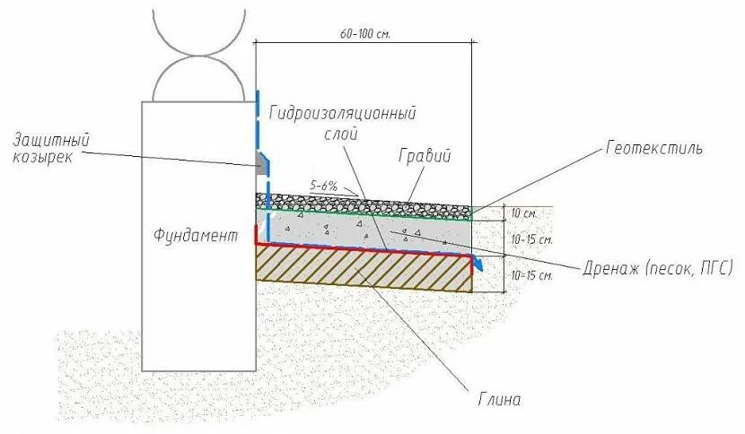 Схема отмостки Указанная выше схема является общепринятой. Однако, она может изменятся в зависимости индивидуальных особенностей конкретной ситуации.