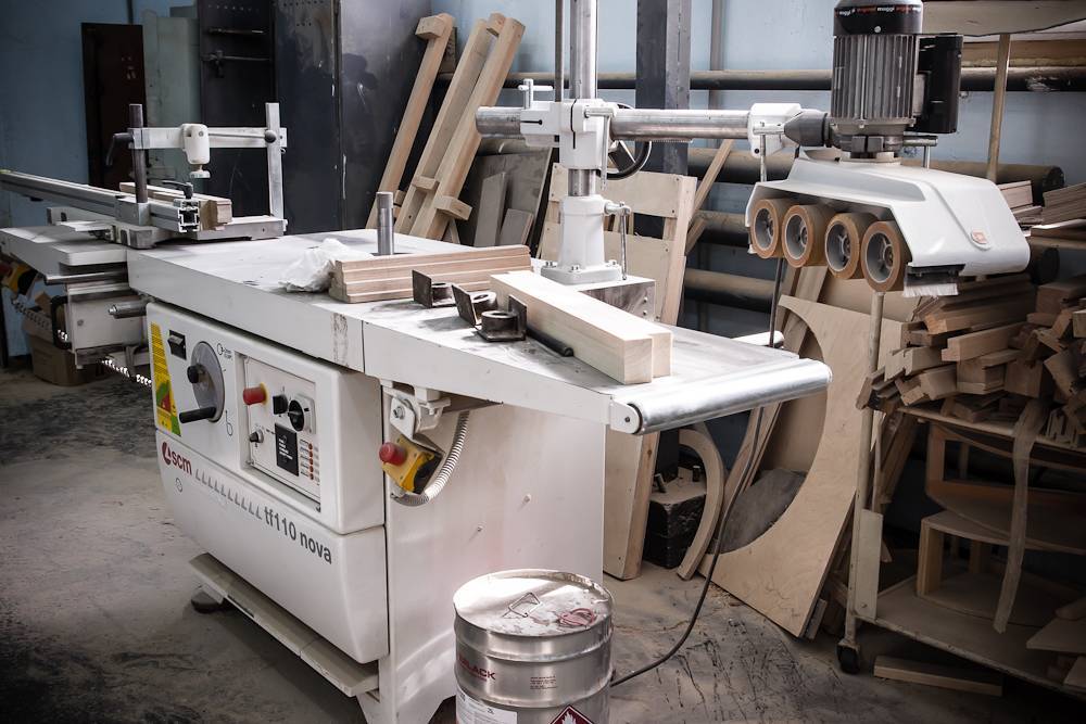 В мастерских древесину обрабатывают на специальных станках. Фрезерные, кромочные, сверлильные и другие деревообрабатывающие станки стоят недешево, их приобретают для изготовления большого количества деталей мебели. Универсальный станок, например, можно расположить в гараже, и то, если планируется часто изготавливать мебель для дома или на продажу.