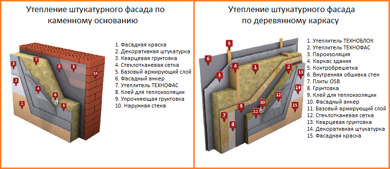 Существует два способа утепления каменной ватой: сухой и «мокрый». Первый предполагает использование деревянного или стального каркаса (обрешетки), в ячейки которого закладывают утеплитель. При втором способе плиты крепят к стенам без каркаса с помощью клея и тарельчатых дюбелей.