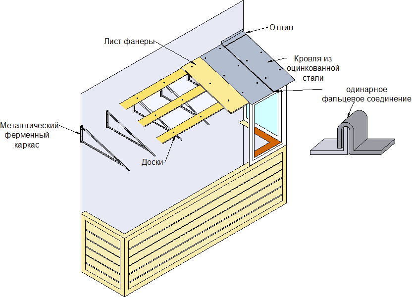 Тип конструкции крыши балкона