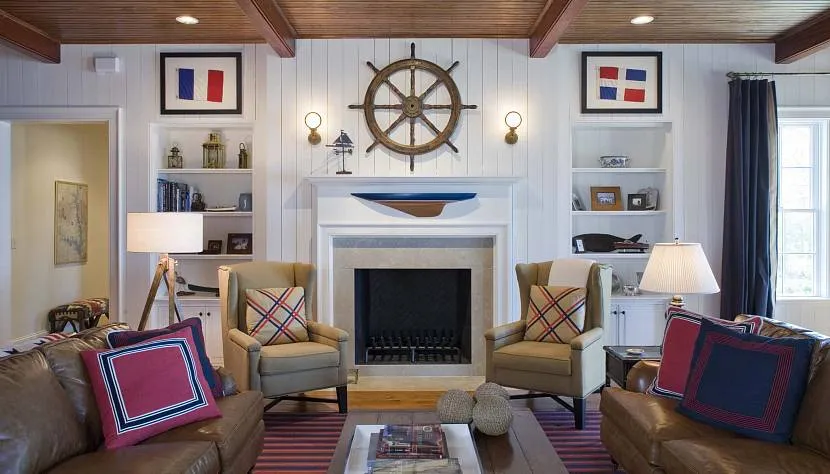 которых ассоциируются с морем и кораблями (особый шарм интерьеру гостиной или