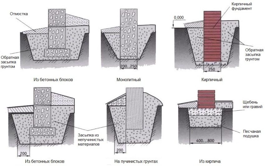 Для фундаментных оснований могут быть использованы следующие материалы: