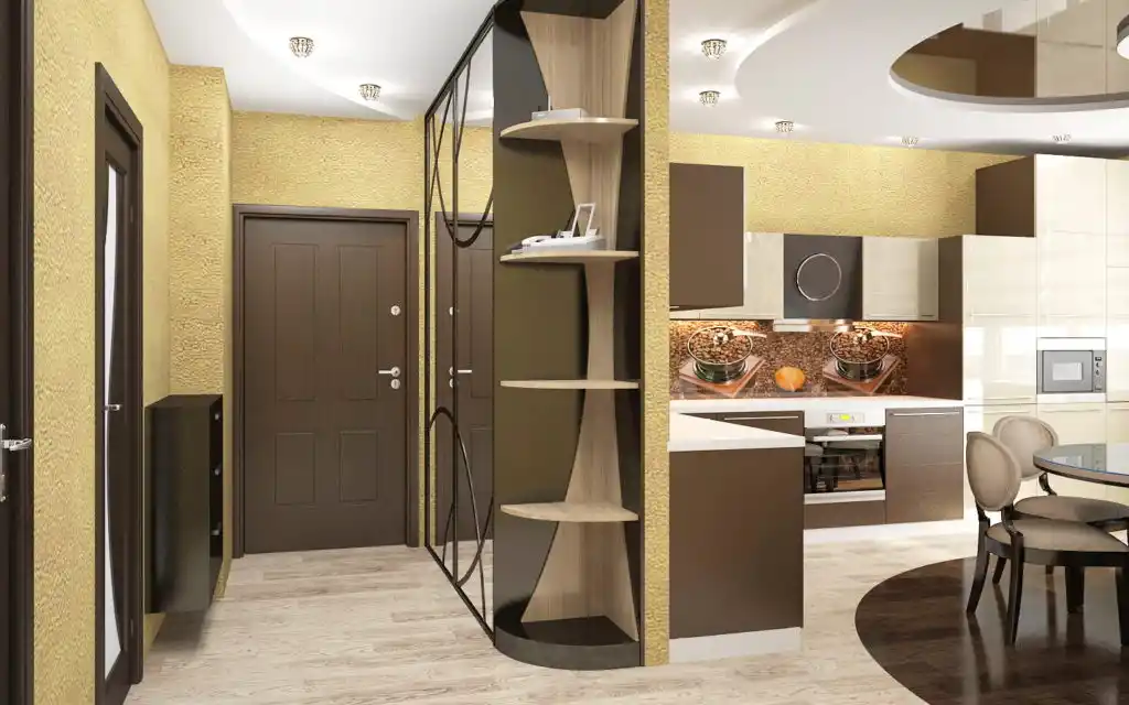 Прихожая и коридор выполняют несколько утилитарных функций – это хранение уличной обуви, верхней одежды, гардеробный шкаф, зеркало, желательно в полный рост, а также разделяет комнаты между собой. Для узкого коридора и небольшой прихожей лучше зонировать по назначению исполняемой функции, выделить её цветом, светом или предметом мебели.