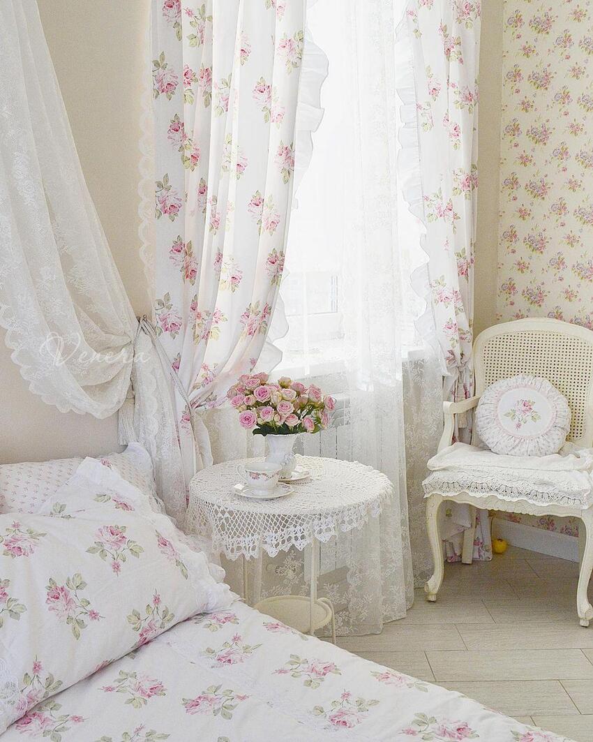 - текстиль и обои в стиле прованс для спальни (фото) или гостиной изобилуют цветочными орнаментами;