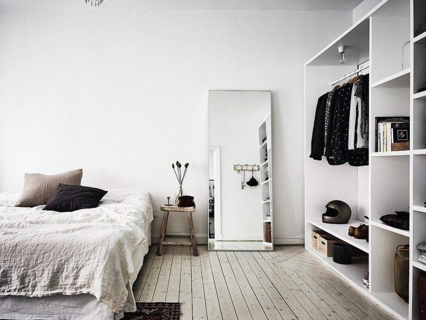 Продумать детали нужно до покупки. Определите место для громоздких предметов: шкафов, кроватей, чтобы не пришлось их переставлять. Они не должны мешать при открывании входной и балконной двери, окна. Если комната узкая, кровать не должна иметь острые углы.