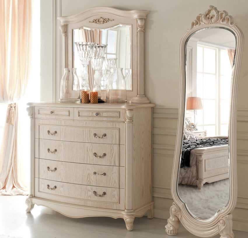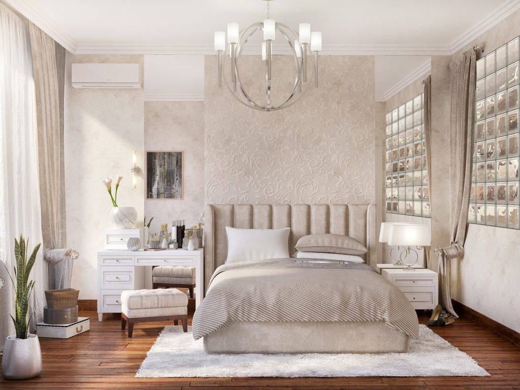 - Туалетный столик или зеркало разместите сбоку кровати.