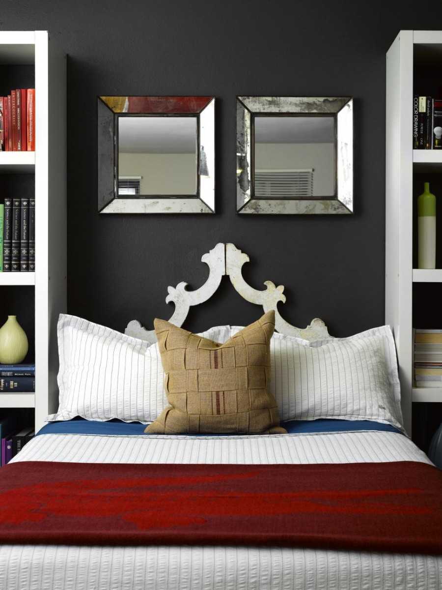 Сделать элементом декора часто рекомендуют кроватное изголовье. Если у имеющейся модели оно ничем не примечательно самое время приложиться к дизайну спальни своими руками и расписать спинку кровати красками или оформить иным оригинальным способом.