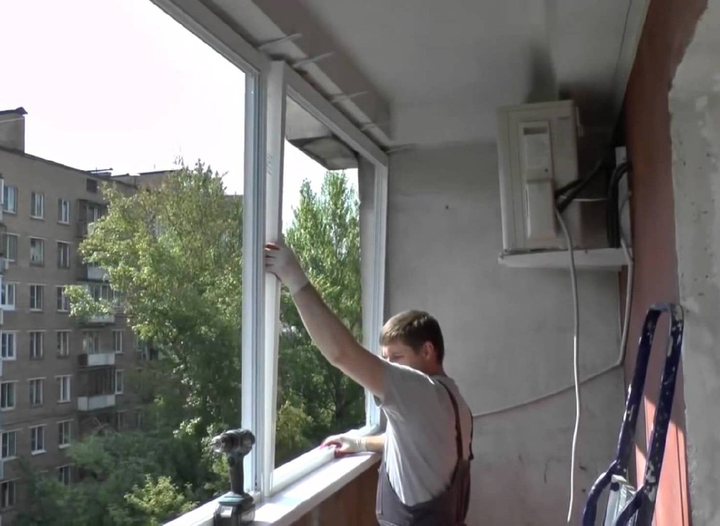 Если на балконе или лоджии установлена старая рама, ее потребуется демонтировать, для этого выполняют следующие операции: