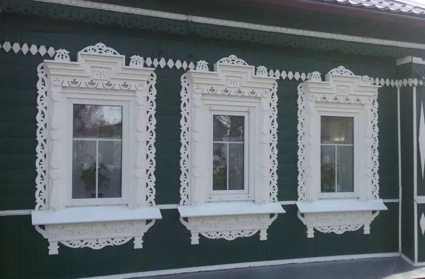 Оригинальные наличники на фасаде вокруг проемаИсточник pro-dachnikov.com