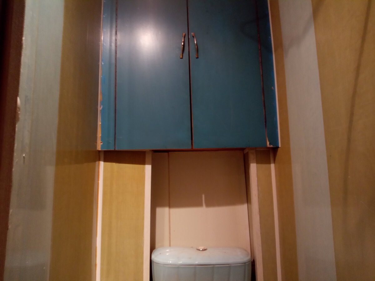И поскольку туалет маленький, то здесь большой люк, который бы давал возможность обслуживать оба счетчика и крана, разместить не получалось. Он просто не смог бы открыться полностью, т.к. рядом уже находился унитаз. Поэтому были сделаны два вертикальных люка, которые свободно открывались, не упираясь дверцами в унитаз.