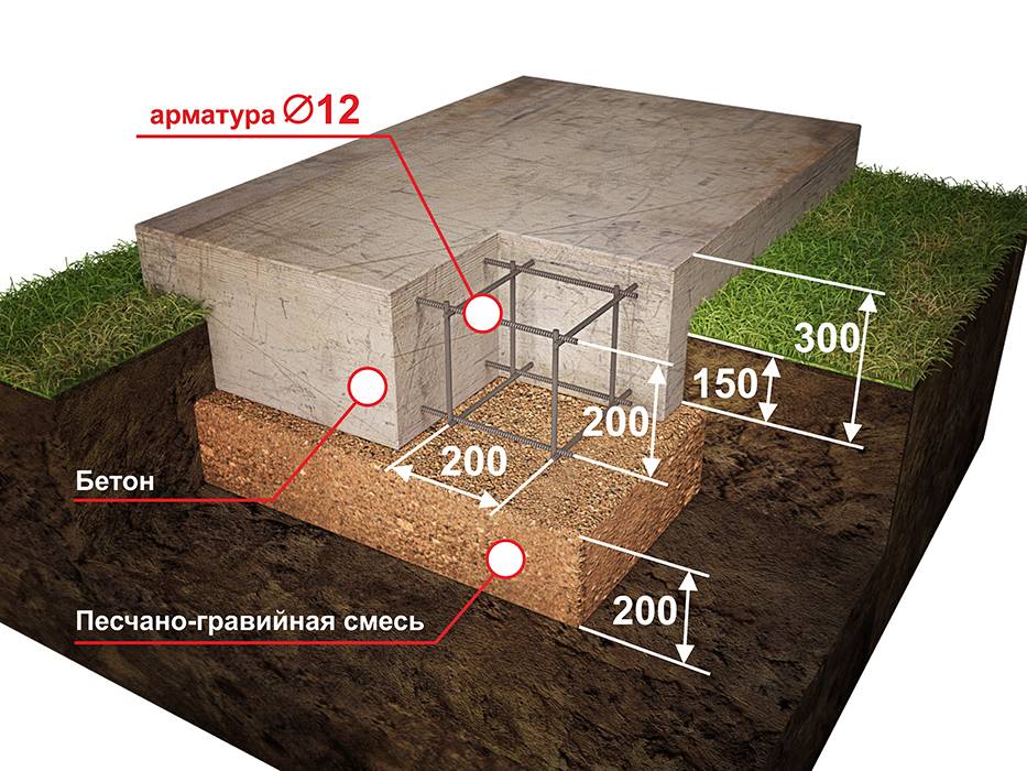 Под печь с варочной рекомендуется возводить монолитный фундамент одним из двух методов: