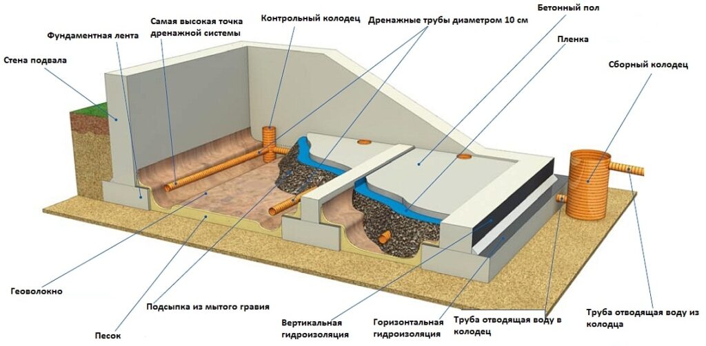 Схема устройства дренажа