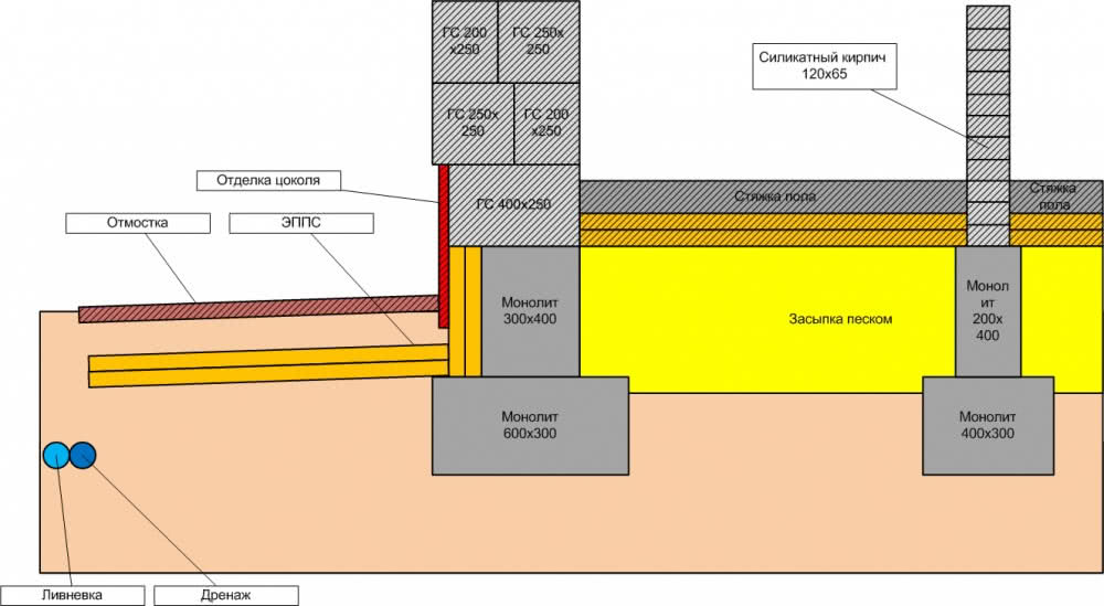 В результате выполненных действий строение оказывается на искусственном возвышении, благодаря которому осадки и талая вода текут в направлении от дома.
