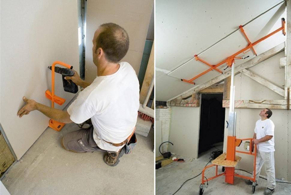 Когда-то сухая штукатурка из слоя гипса между двумя картонными листами не пользовалась высоким спросом, но со временем популярность этого материала возросла, и появились разные приспособления для него, в том числе подъемник для гипсокартона