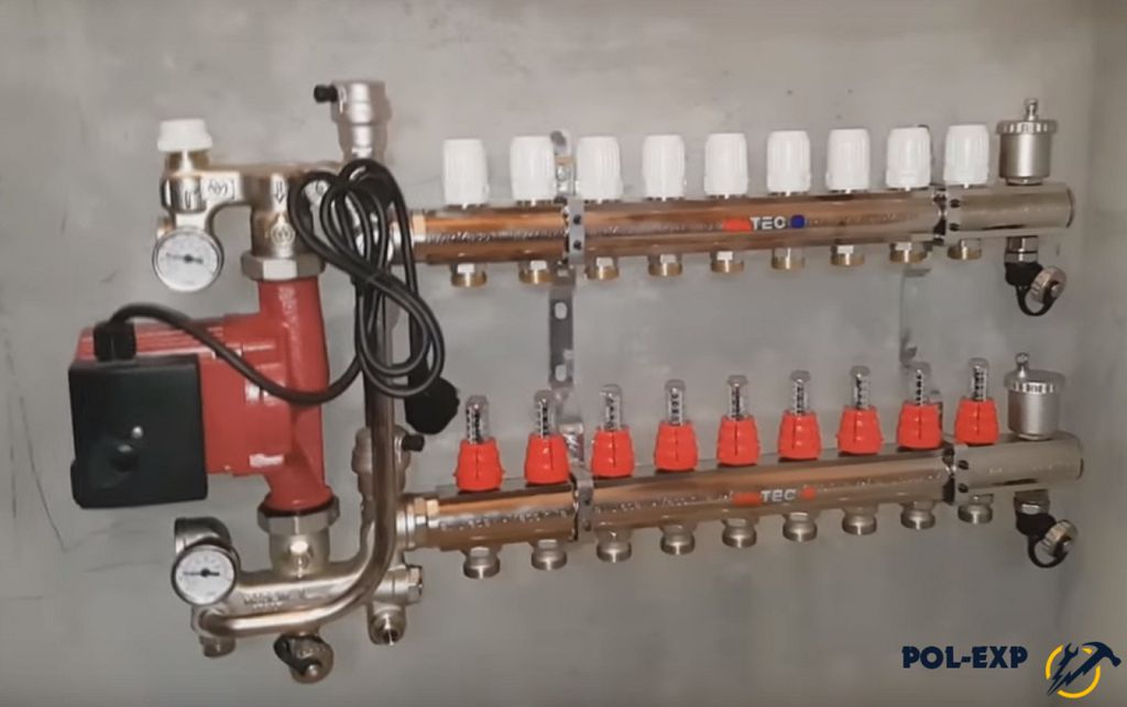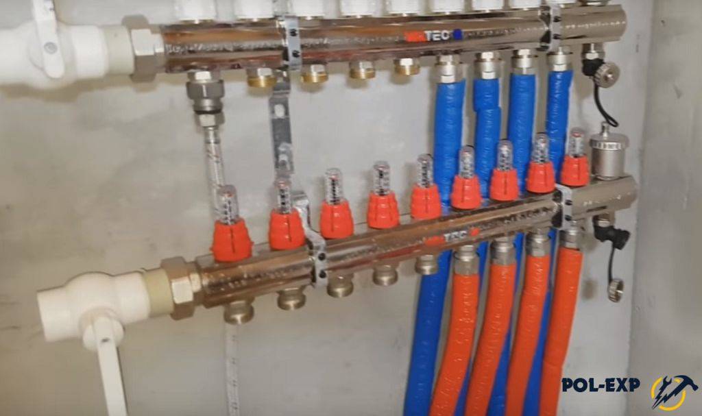 Шаг 5. Производится установка коллектора, к которому будут подключаться трубы водяного пола. Коллекторы монтируются на стену.
