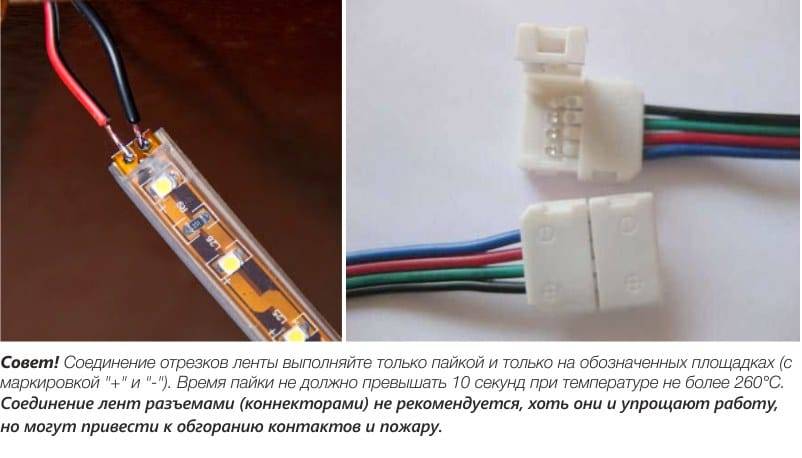 Для электрического соединения отдельных участков подсветки, расположенных по периметру кровати, можно воспользоваться специальными коннекторами, с уже имеющимися проводами. Такой метод ускорит процесс сборки и позволит в будущем быстро разобрать конструкцию. Если такой способ неприемлем, то все участки придётся спаивать между собой отдельными проводами.