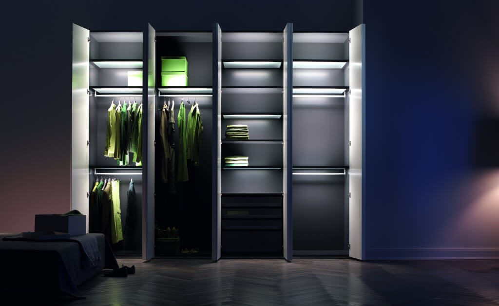 - Основной подсветкой в местах, где трудно или невозможно установить люстру. Например, гардеробное помещение, чулан, кладовая.