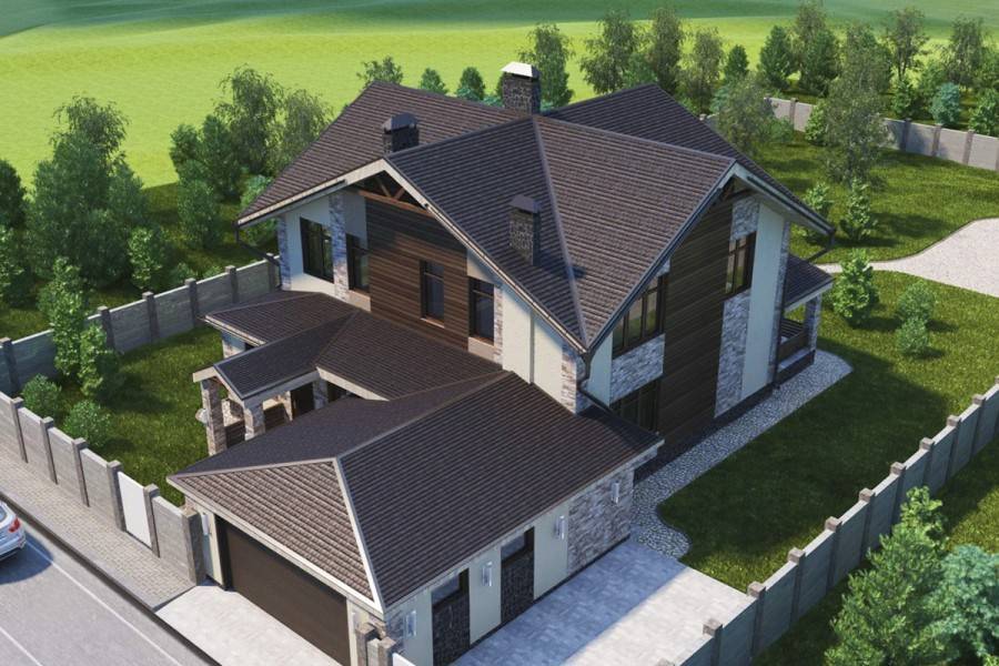 Такой тип кровли оптимален при возведении домов многоугольной формы, у которых есть много различных пристроек, веранд, боковых мансард.