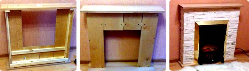 - Как только каркас полностью готов, следует подвести к нему электричество так, чтобы вам было удобно включать камин.