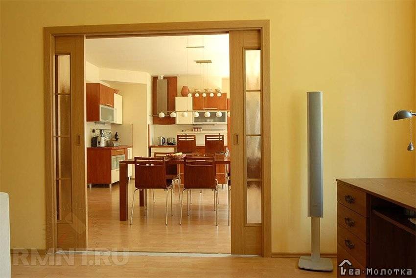 Особой изысканностью отличаются откатные порталы, в которых полотно при открывании уходит в нишу внутри стены. В этом случае дверь является частью конструкции перегородки и проектируется вместе с ней. Откатным механизмом может служить подвесная рейка, скрытая в верхней части портала, на которую через ролики навешивается полотно двери. В другом варианте опорная рейка (профильный жёлоб) врезается в пол, а полотно имеет опорный ролик (или ролики), входящий в эту рейку.