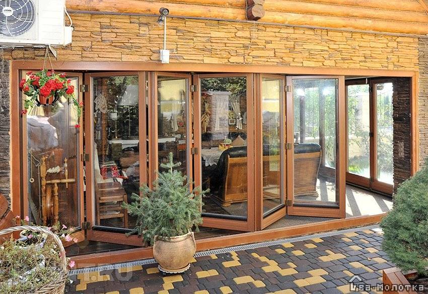 1. Экономия жизненного пространства. Панорамное портальное остекление экономит место, которое обычно занимают открытые створки. Самое большое пространство позволяет открывать «гармошка». Ее створки (2 – 10 штук) поочередно складываются, смещаясь вправо или влево, фактически образуя на месте портала проем.