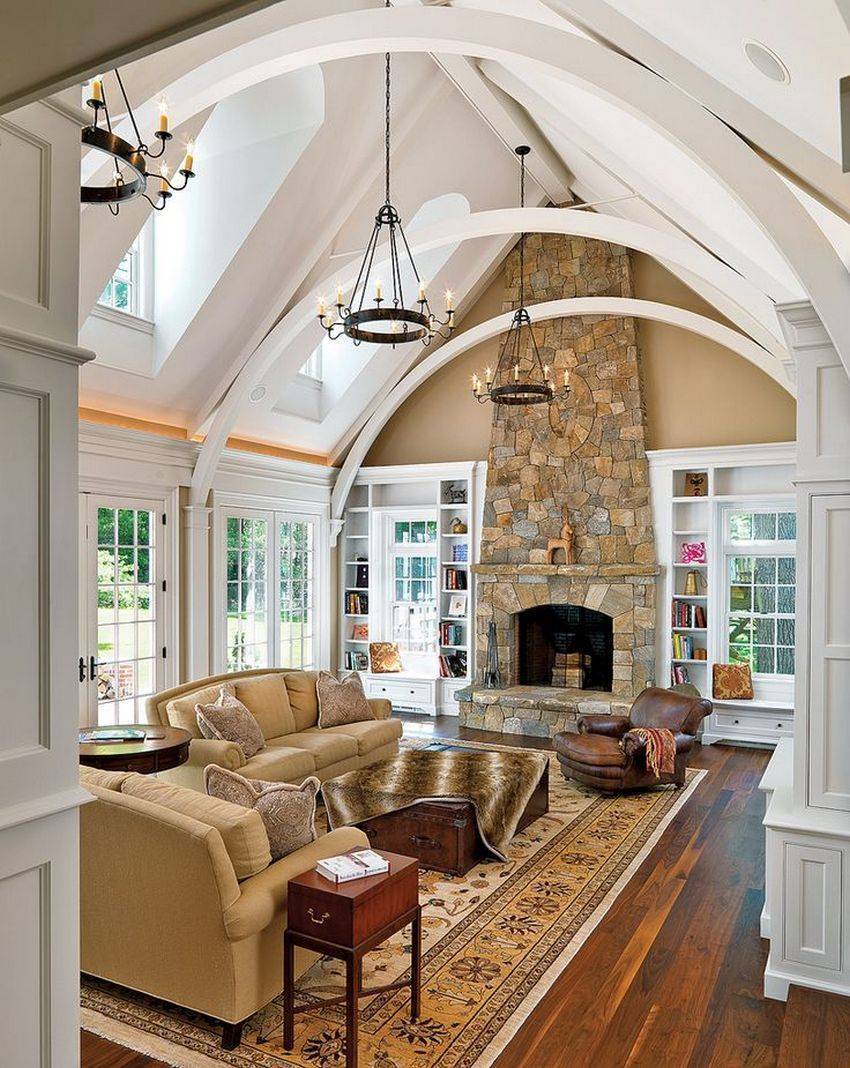 Покоряют своей уникальной красотой. Узорные потолки выглядят необычайно привлекательно и помогают избежать монотонности и статичности в гостиной.