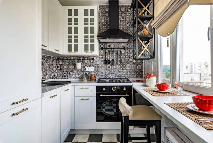 В кухне подоконник часто совмещают с мебелью, увеличивая полезную площадь