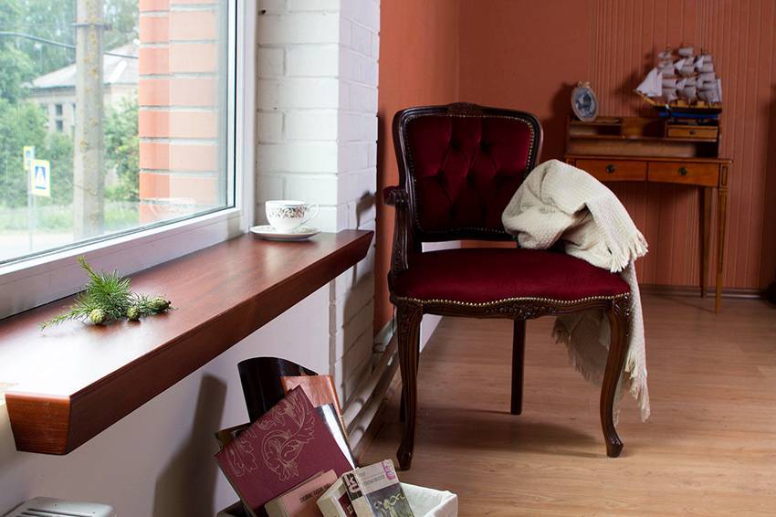 На нем, как на полке, могут располагаться декоративные элементы или книги. На балконе может быть организован уголок отдыха, где подоконник выступает в роли кофейного столика. В зависимости от поставленных целей, выбирают необходимую ширину и прочность материала.