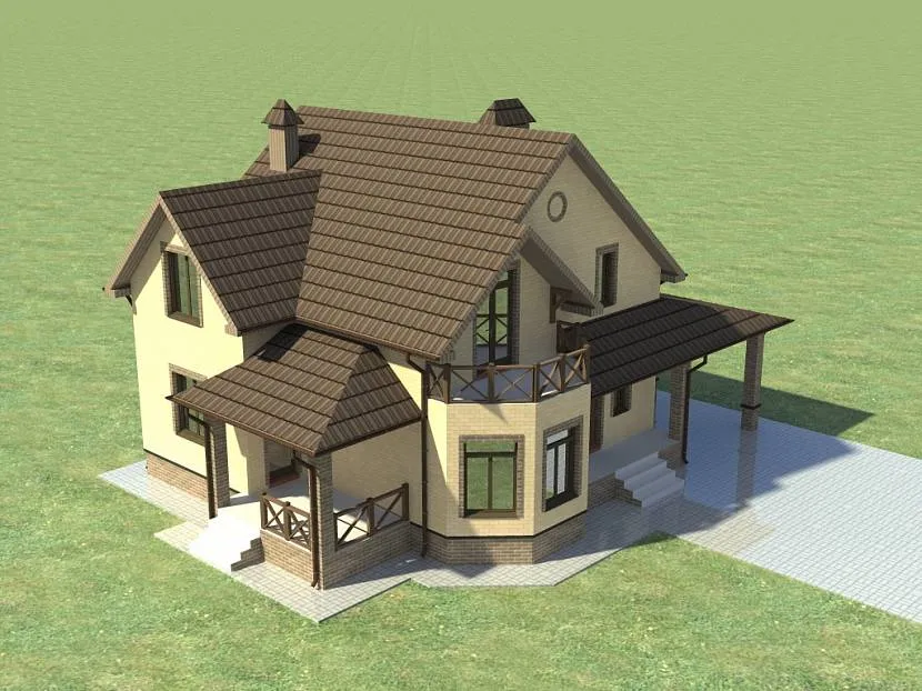 - Архитектурные дополнения. Существуют стандартные (например, с небольшим крыльцом) и расширенные варианты. Балкон и веранда увеличат стоимость, но сделают коттедж комфортнее и красивее.