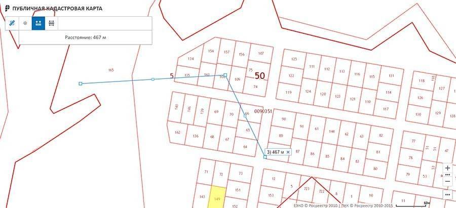 С помощью инструмента «линейка» определяют координаты объекта, измеряют расстояние до ближайшего дома, дороги, водоёма.