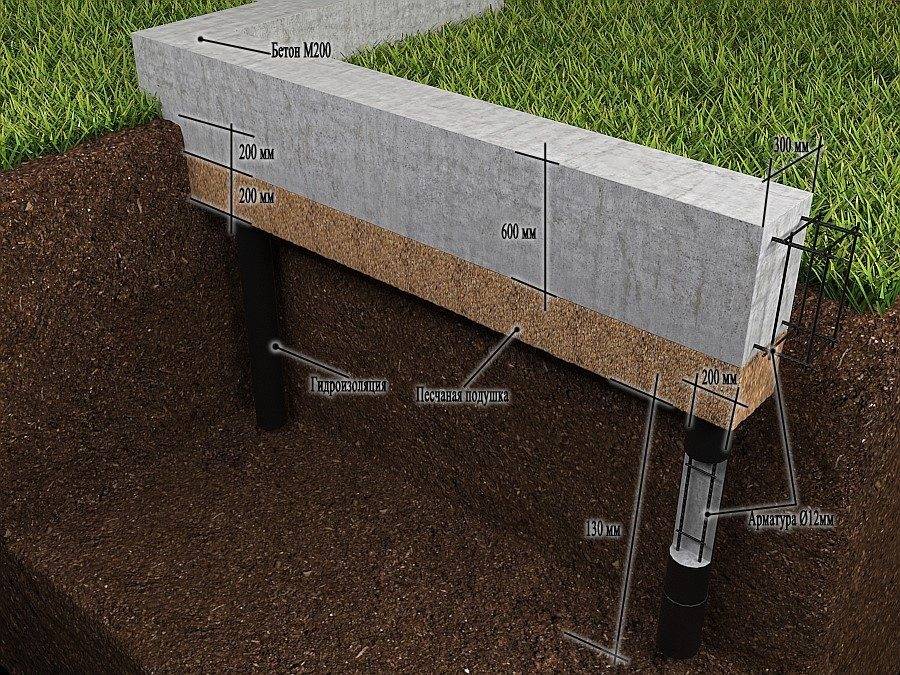 Рассмотрим порядок расчета железобетонного ростверка. Ширина ленты должна быть равна толщине стен.